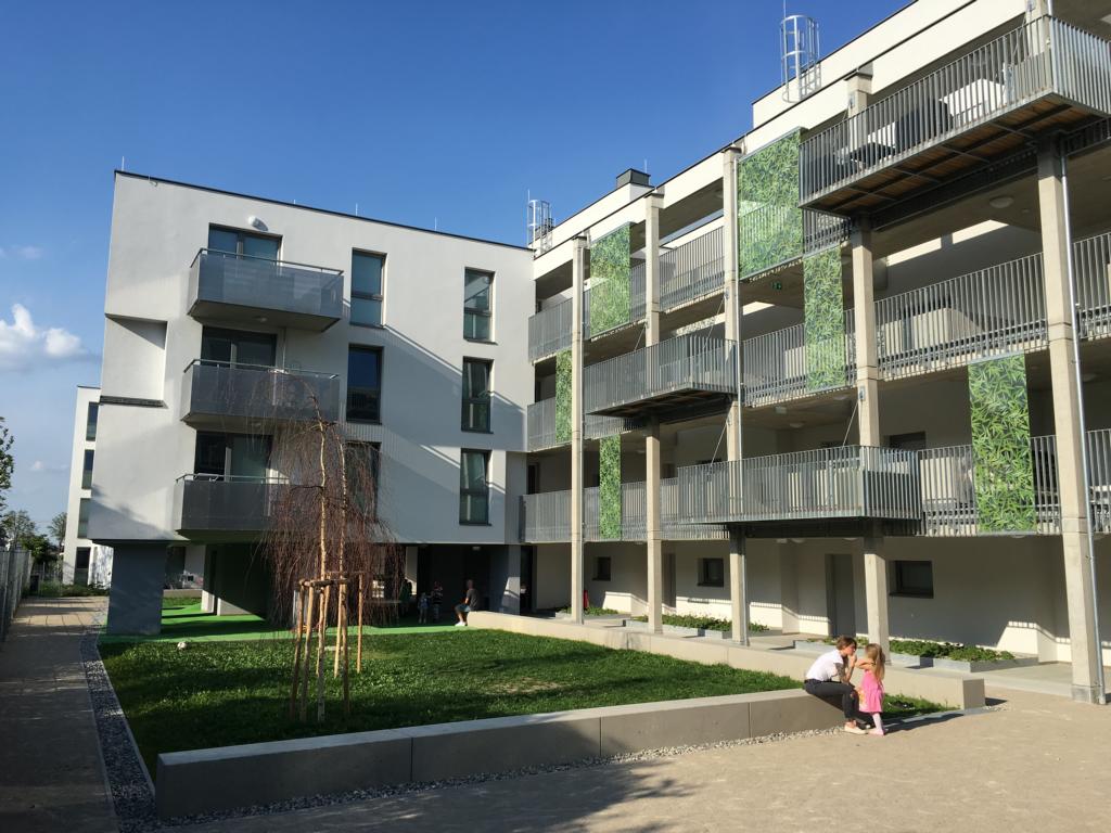 Die Wohnanlage wird durch zwei besondere Wohnformen ergänzt: In einem sozialen Projekt wird eine Wohnform für vier Jugendliche ab 14 Jahren angeboten, die unter intensiver Betreuung durch die „Wohngruppe Sopa“ an ein selbstständiges Leben herangeführt werden sollen. Das zweite Projekt nennt sich FLATworks und unterstützt Familien mit Migrationshintergrund in Wien, leistbaren Wohnraum zu finden. Alle Infos gibt es auch auf der projekteigenen Website www.aufeinanderbauen.at