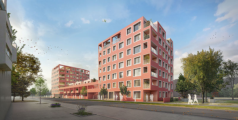 Die Baugruppe OASE.inklusiv in Wien Donaustadt ist das Ergebnis eines gewonnenen Baugruppenwettbewerbs im Team mit Neues Leben, einszueins Architektur, yewo Landschaftsarchitektur und dem neunerhaus.