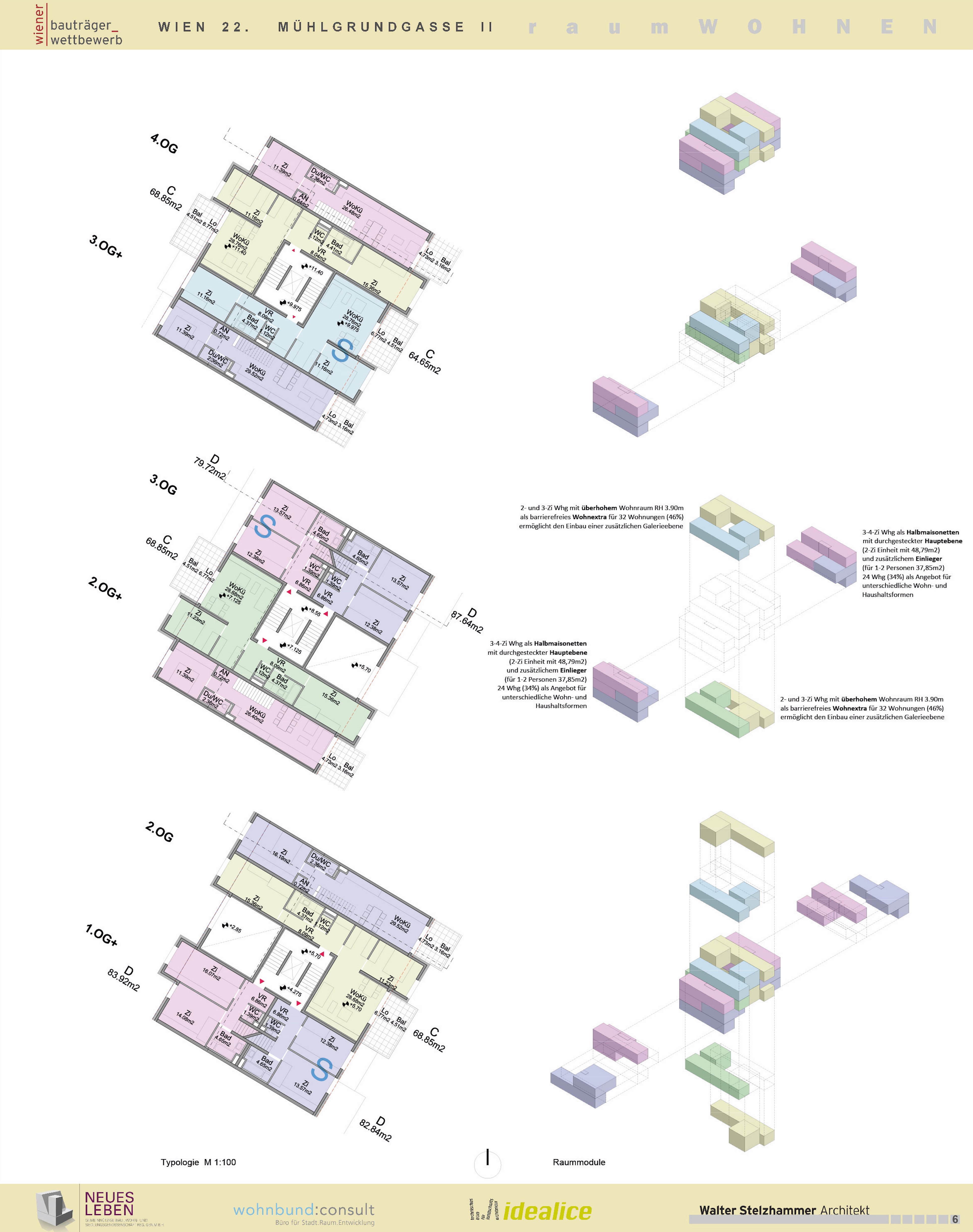 Das Projekt “raumWOHNEN” in der Konstanziagasse 2-8 in Wien, 22. ist das Ergebnis eines gewonnenen Bauträgerwettbewerbs im Team mit Neues Leben, Architekturbüro Walter Stelzhammer und idealice Landschaftsarchitektur. Es versucht einen wohn-