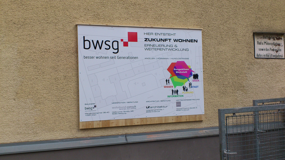 Die Wohnhausanlage „Knollerstr. 2-24 / Hörmannstr. 4-8 / Hunoldstr. 11-15“ in Innsbruck wies dringenden Sanierungsbedarf auf. Die Wohnungen selbst und auch die allgemeinen Räume und Freibereiche, die Parksituation und nicht zuletzt die technische Infrastruktur waren nicht mehr zeitgemäß. Überlegungen zu notwendigen Sanierungsmaßnahmen bzw. auch Neubau wurden angestellt. Die BWSg führte diesen Entscheidungsprozess in einer offenen und transparenten Diskussion mit der Bewohnerschaft.