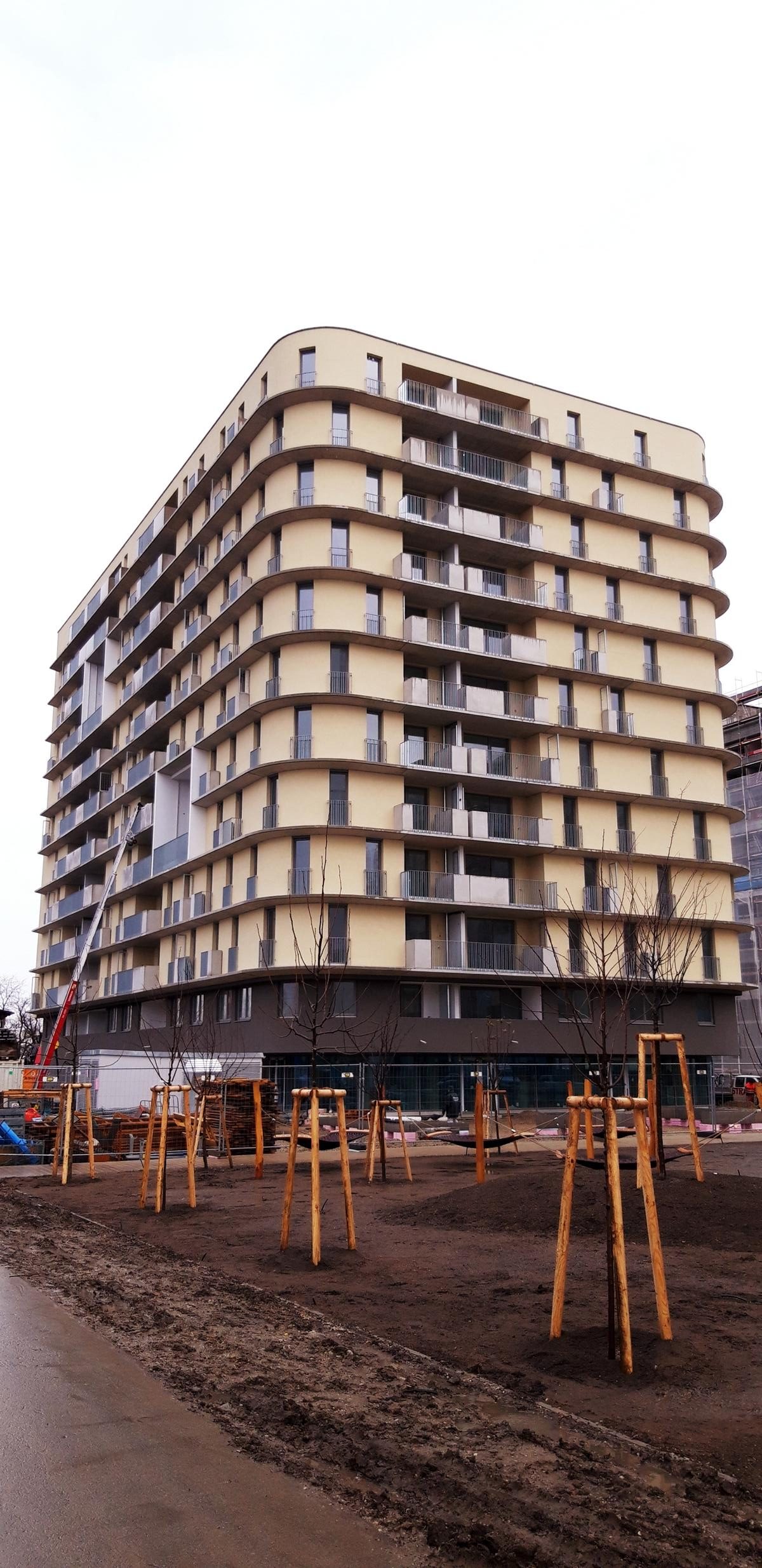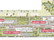 Das Projekt: 108 geförderte Mietwohnungen | Arztpraxis | 7 Start-Wohnungen für Asylberechtigte | DIY-Werkstatt (bauplatzübergreifend) | Gemeinschaftsräume | Nachbarschaftsgarten | Besiedlungsbegleitung